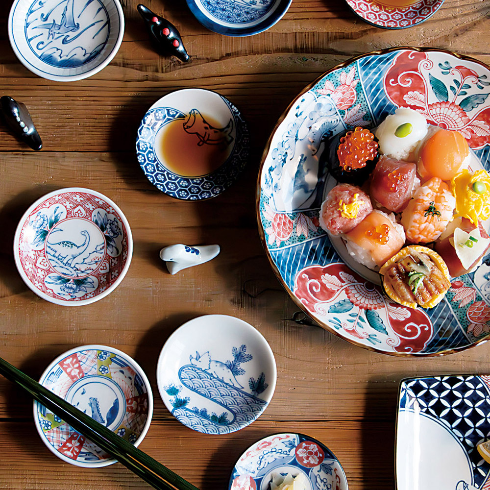 日本の伝統的な文様と地に眠った恐竜たちのコラボレーション!当社が商売を営む岐阜県瑞浪市は、美濃焼の産地として栄えていますが、一方で化石が採れる街としても有名です。古き良き魅力的なの文様のなかに、恐竜がひっそりと潜むユニークなデザインは、きっと新しい物語を紡ぐでしょう。大人から子供まで幅広い世代に愛される一皿に。古典柄に可愛らしい恐竜たちが描かれたまめ皿が集まりました。4枚で「し」あわせの意味を込めて、しあわせの訪れを願ったギフトセットです。ブック型の化粧箱にもこだわり、図鑑を開いた時のような特別感とわくわく感あふれるギフトです。しあわせ図鑑は、もらった時に思わず笑顔がこぼれる一品です。