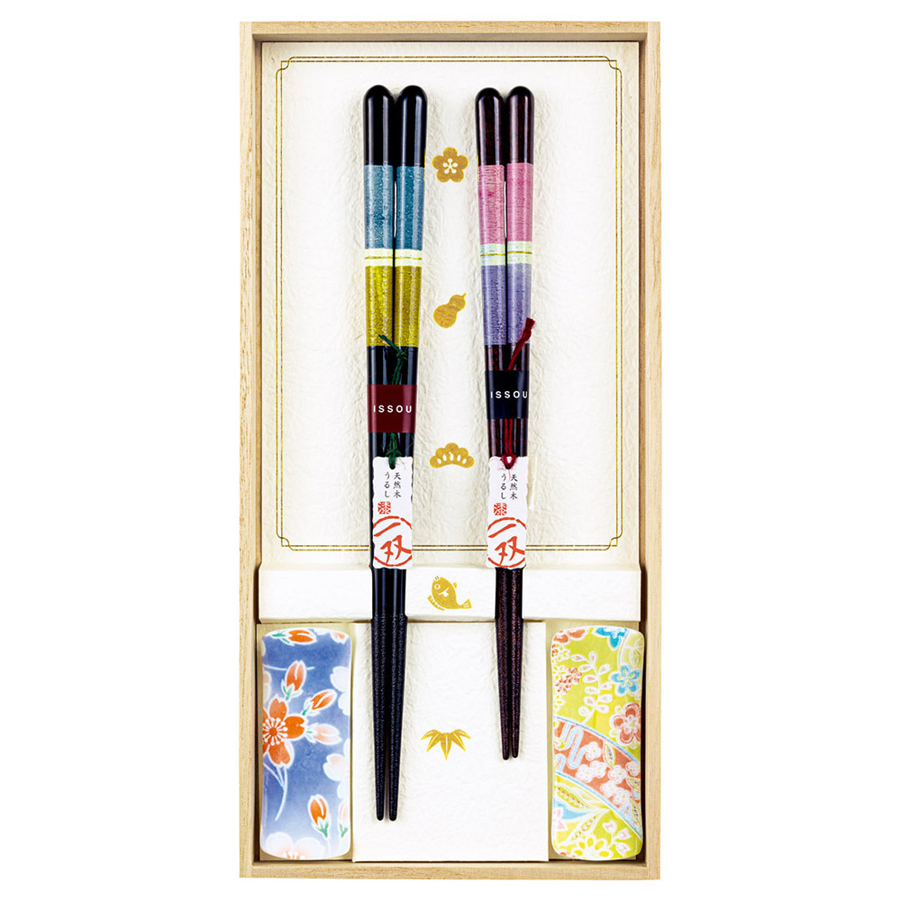 一双 百福 桐箱 箸置付夫婦箸 桜彩
